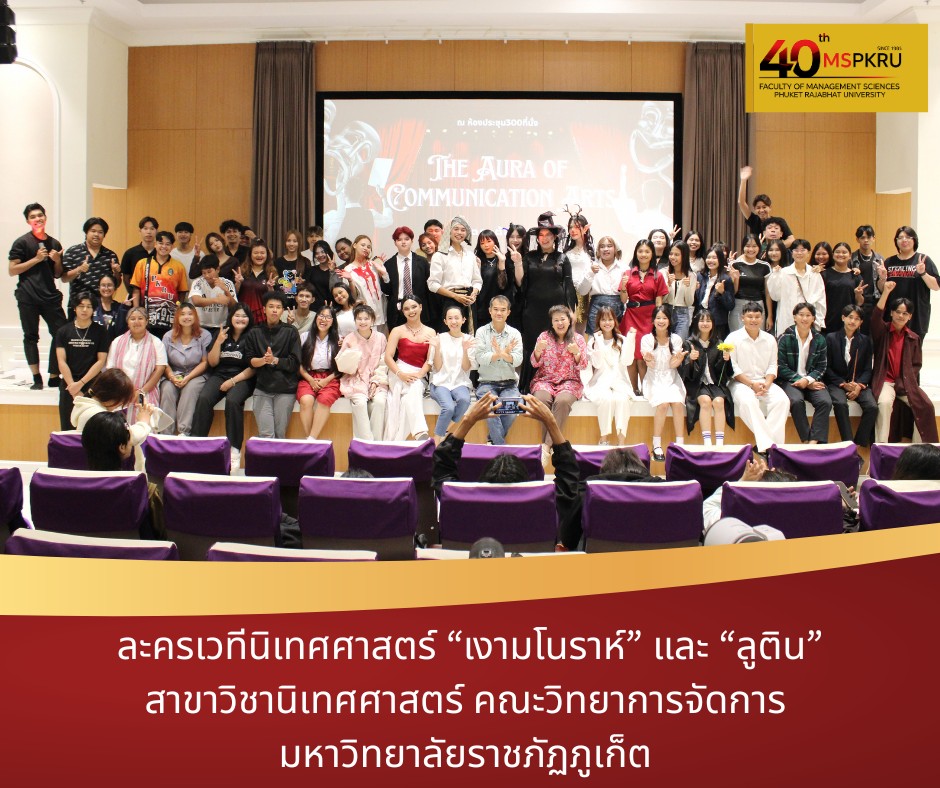 ละครเวที “เงามโนราห์” และ “ลูติน” จัดโดยนักศึกษาชั้นปีที่ 1 สาขาวิชานิเทศศาสตร์ คณะวิทยาการจัดการ มหาวิทยาลัยราชภัฏภูเก็ต ภายใต้รายวิชาสื่อสารการแสดง ซึ่งได้รับเกียรติจาก ผศ.นงเยาว์ ประสมทอง คณบดีคณะวิทยาการจัดการ กล่าวเปิดกิจกรรมละครเวทีในครั้งนี้ เมื่อวันที่ 24 ตุลาคม 2568 ณ ห้องประชุม 300 ที่นั่ง อาคารคณะวิทยาการจัดการ มหาวิทยาลัยราชภัฏภูเก็ต