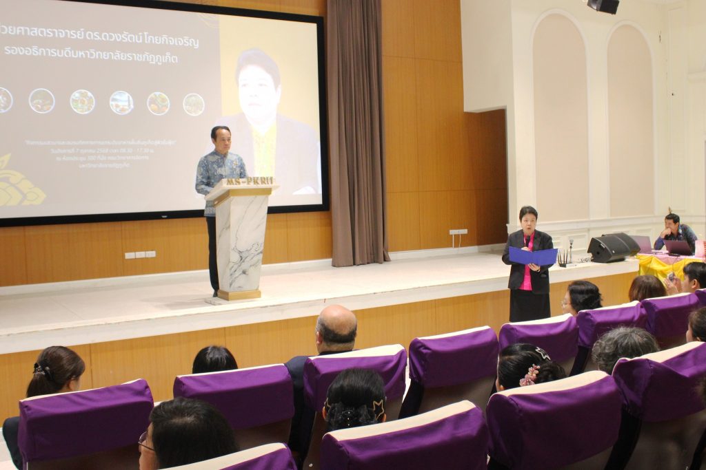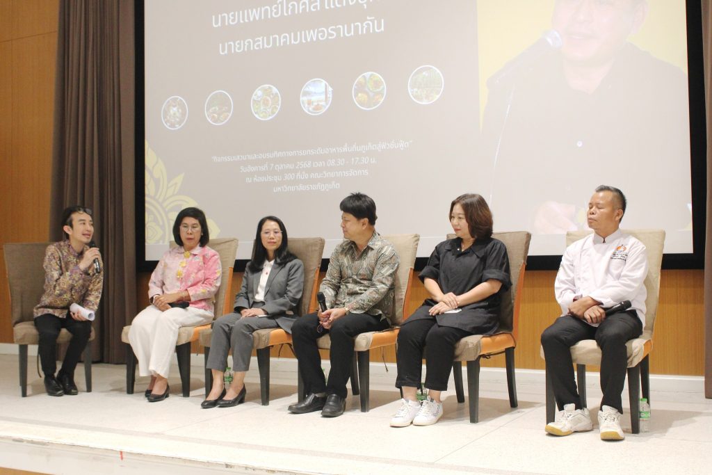 คณะวิทยาการจัดการ มหาวิทยาลัยราชภัฏภูเก็ต ได้จัดกิจกรรมเสวนาทิศทางการยกระดับอาหารพื้นถิ่นภูเก็ตสู่ฟิวชั่นฟู๊ด โครงการส่งเสริมและพัฒนาอาหารพื้นถิ่นภูเก็ตบูรณาการสู่การท่องเที่ยว ในวันที่ 7 ตุลาคม 2568 ได้รับเกียรติจาก นายสมาวิษฎ์ สุพรรณไพ รองผู้ว่าราชการจังหวัดภูเก็ต เป็นประธานเปิดงาน โดยมี ผู้ช่วยศาสตราจารย์ ดร.หิรัญ ประสารการ อธิการบดีมหาวิทยาลัยราชภัฏภูเก็ต กล่าวต้อนรับ ผู้ช่วยศาสตราจารย์ ดร.ดวงรัตน์ โกยกิจเจริญ รองอธิการบดีฝ่ายแผนงาน บริการวิชาการและวิจัย กล่าวรายงานถึงวัตถุประสงค์การจัดงาน และผู้ช่วยศาสตราจารย์นงเยาว์ ประสมทอง คณบดีคณะวิทยาการจัดการ มอบของที่ระลึก ณ ห้องประชุม 300 ที่นั่ง คณะวิทยาการจัดการ มหาวิทยาลัยราชภัฏภูเก็ต